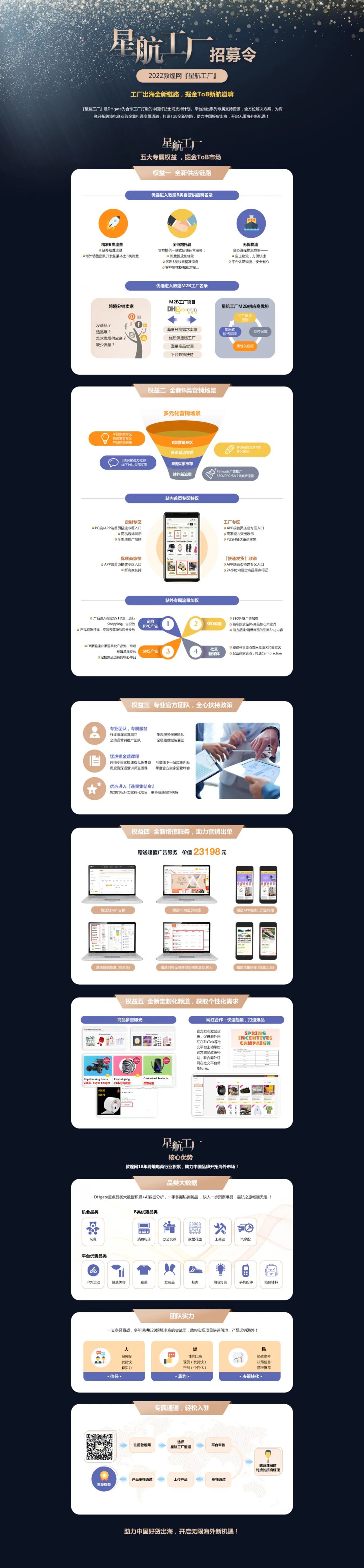 雨果跨境了解到,其入驻“星航计划”之后,进入了敦煌网B类供应商名录,享受敦煌网官方提供的全链路一站式托管运营服务,精准对接海外B类买家需求。